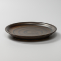 黒釉刷毛目(こくゆうはけめ)という作風に丸形の平皿中サイズで、いろいろなお食事やデザートの器としてお使いいただけます。