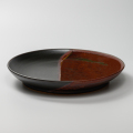 鉄赤釉と黒釉の掛分けで1人用のプレート皿や多数用の盛り皿として使いやすい丸形の大皿