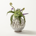 至高の作風・鬼白の風合いに丸形のミニ花入れが、花を一層引き立てます。
