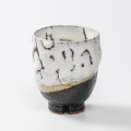 鬼白(おにしろ)と黒釉の掛分けという作風の松クラスにベーシックな呉器(ごき)形にヘラメのある湯呑で、お食事などでの自分専用としておすすめです。