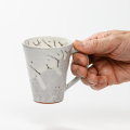 ややおとなしめの風合いの鬼白に持ちやすい取手の末広形碁笥底マグカップ小(満水容量180cc)