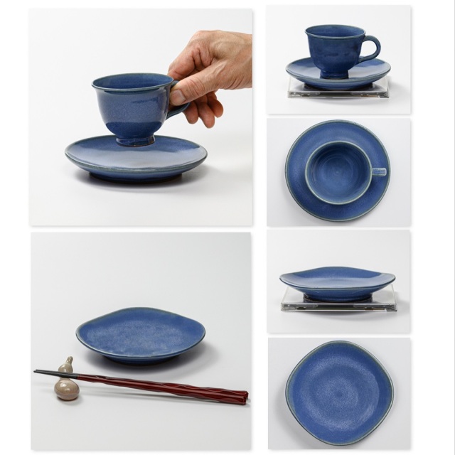 いつもはマグカップの方も、休日はソーサ付きでやや口径の大きいカップと銘々皿で、紅茶&クッキーなどお楽しみください。この作風の特徴である鮮やかな青に白の結晶がある風合いはとても魅力的!